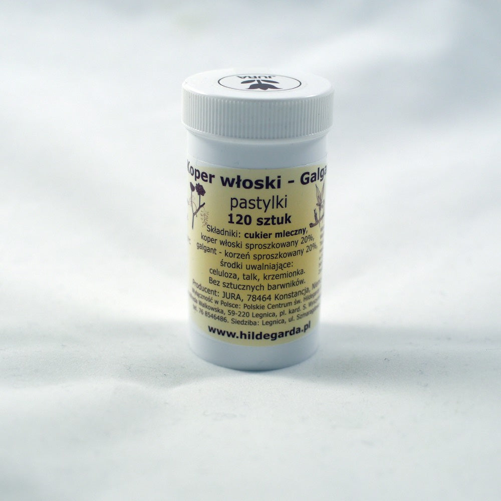Convenient lozenges made of galangal-fennel, which combine the properties of both spices. (…) e.g. unpleasant odor from the mouth, indigestion, flatulence: dissolve 1-2 lozenges made of galangal and fennel on the tongue; instead of lozenges, you can use both spices in powder.