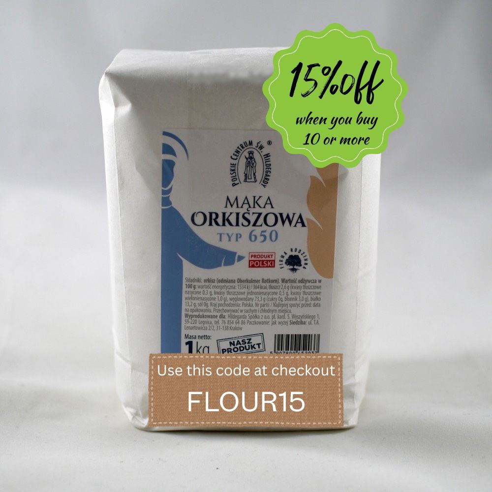 Light spelt flour type 650 „Hildegarda” - 1 kg (2.2 lbs)