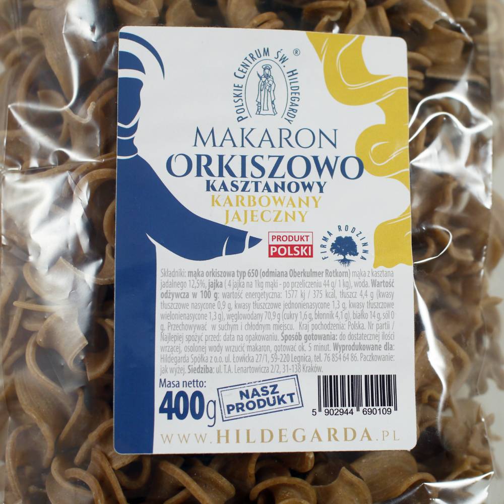Spelt and chestnut pasta is an excellent, Hildegard culinary suggestion for preparing basic dishes (e.g. various casseroles), salads, salads, supplementing soups, as well as combining with aromatic fruits (apples, cherries, raspberries) and spices.