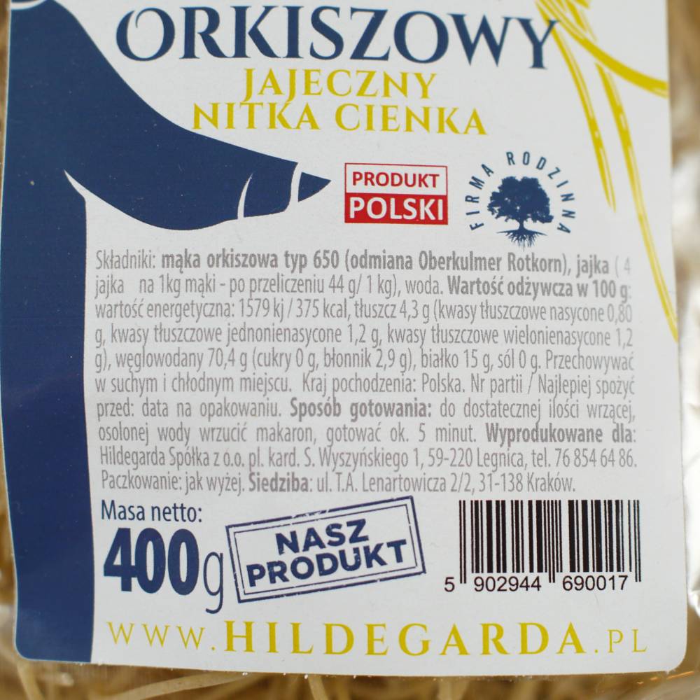 Ingredients: spelt flour (100% Oberkulmer Rotkorn variety, grown in Poland) type 650, eggs, water.